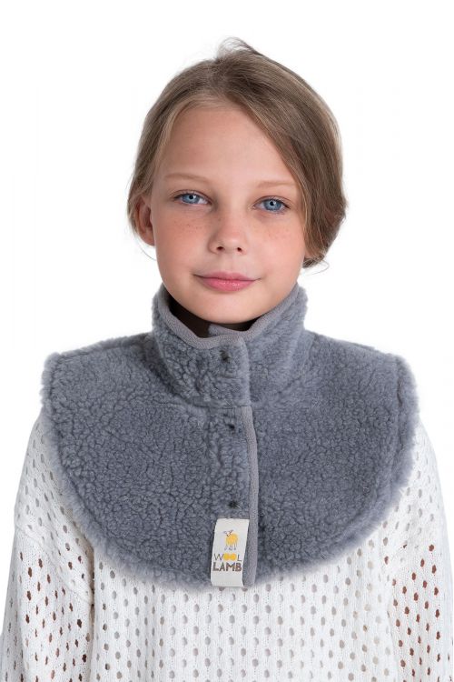 Манишка ДЕТСКАЯ изготовлена из натуральной шерсти, подкладка флис, металлические кнопки, полностью расстегивается, теплая, комфортная, удобно использовать., ВОРОТНИК-МАНИШКА, Воротник-манишка из натуральной овечьей шерсти – самый лучший способ защиты области шеи, горла, верхнего отдела позвоночника., Манишка выполнена из уникального материала – вязанный шерстяной мех на трикотажной основе. Высота ворса 5-7 мм, высокая эластичность и мягкость материала. Она мягко облегает шею, способствует глубокому прогреванию, сохранению тепла. Благодаря широкой площади охватывает также грудную область и верхнюю часть спины., -оказывает массажный эффект, улучшает микроциркуляции крови в области позвонков. - профилактика простуды и воспаления горла, при ангине - профилактика остеохондроза шейных позвонков - защита горла и груди при работах на холоде, при влажности и сквозняках.