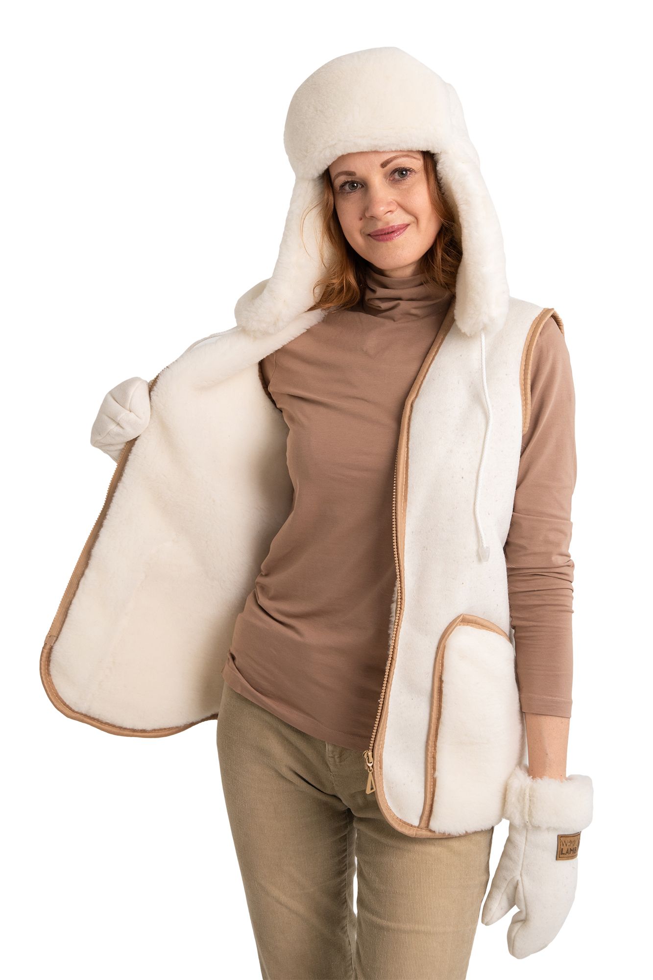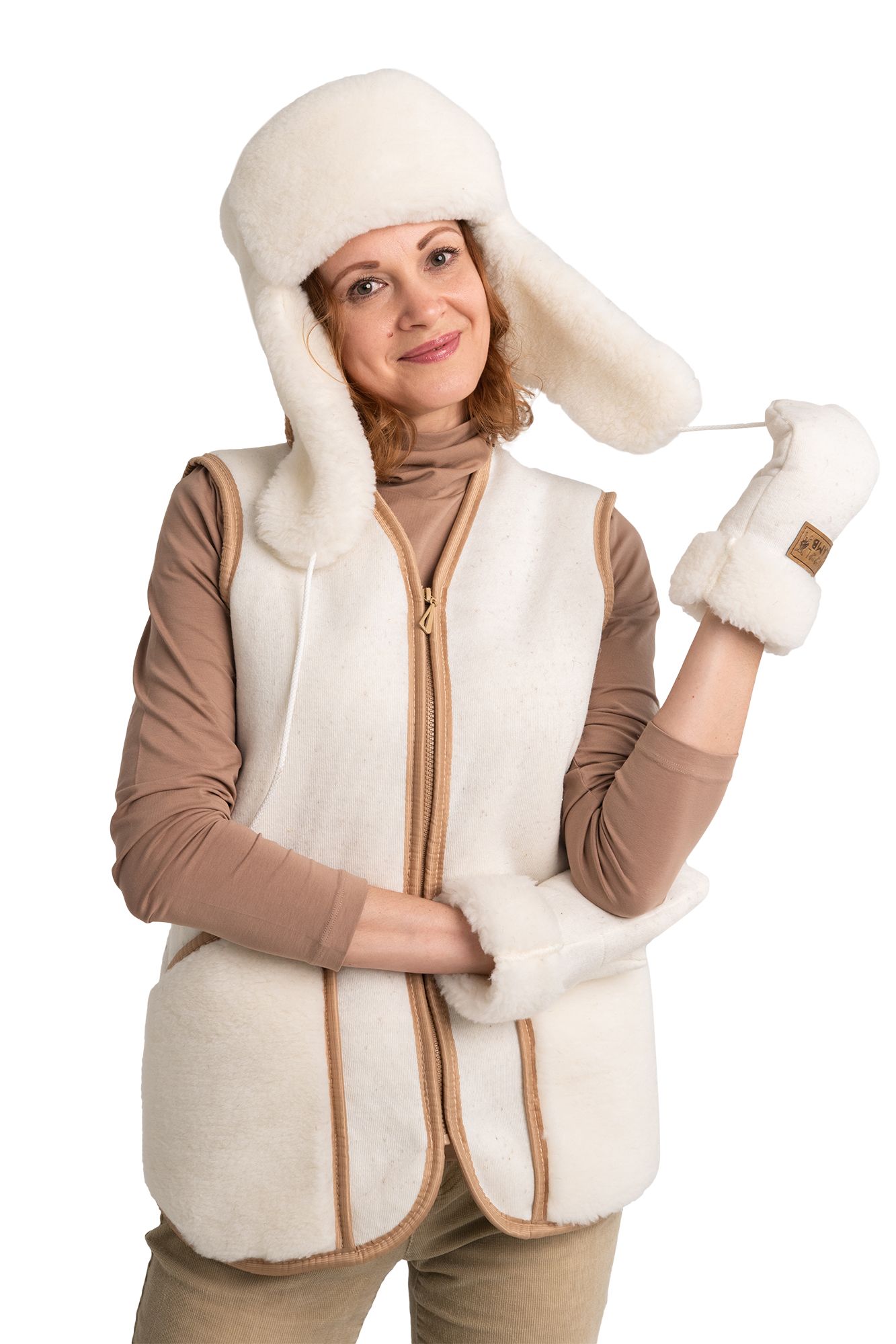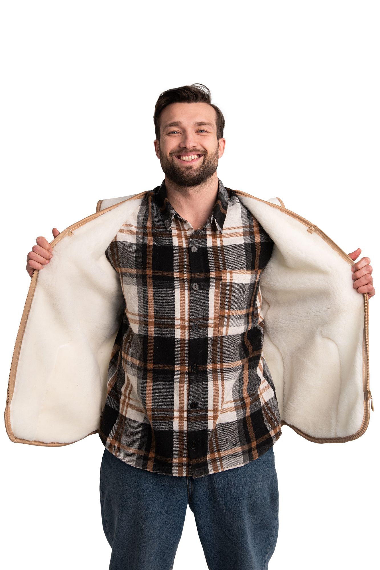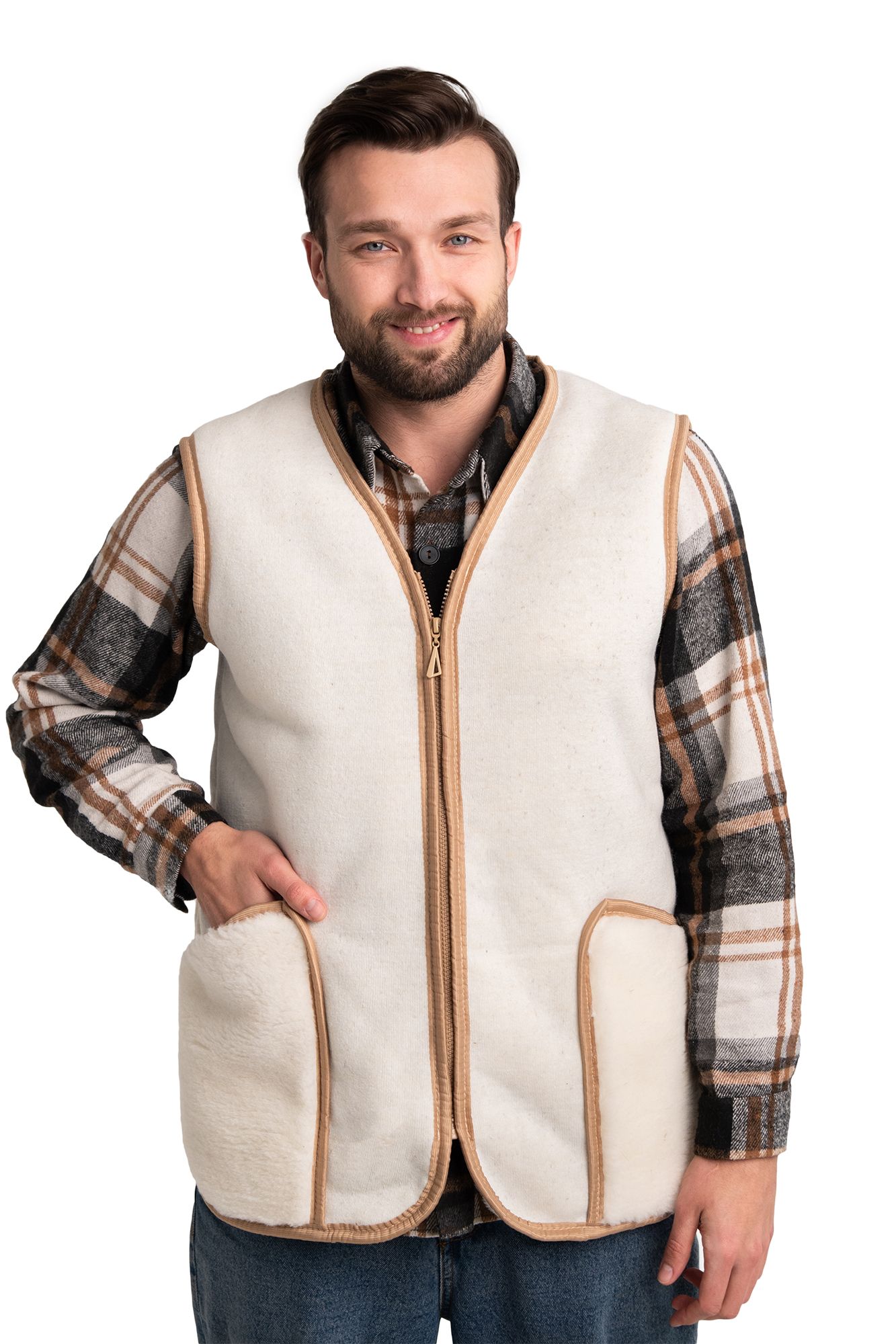 Жилет на молнии, выполнен из натуральной овечьей шерсти.