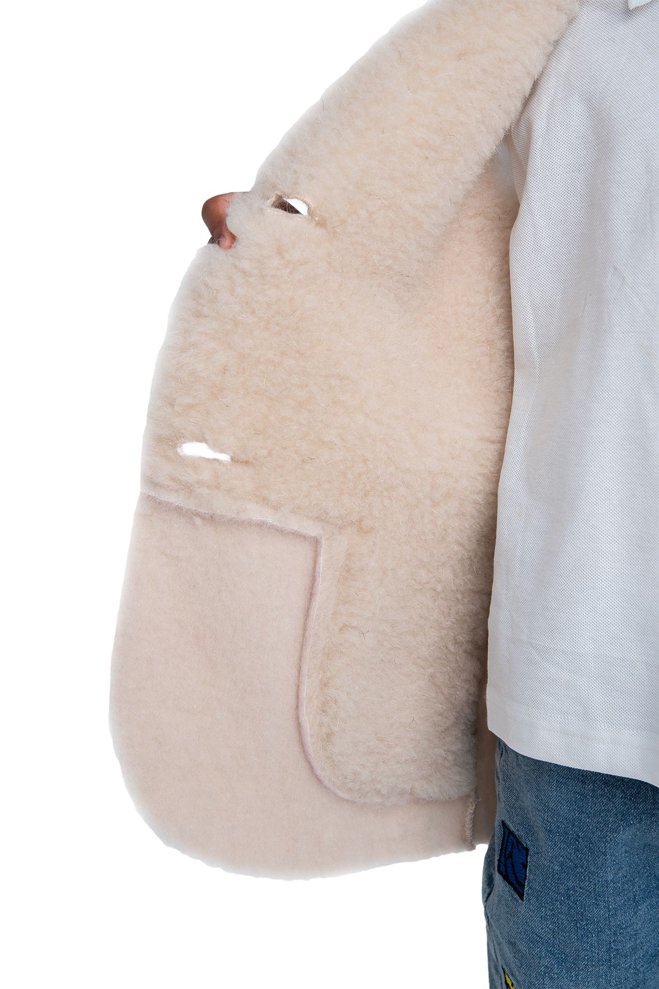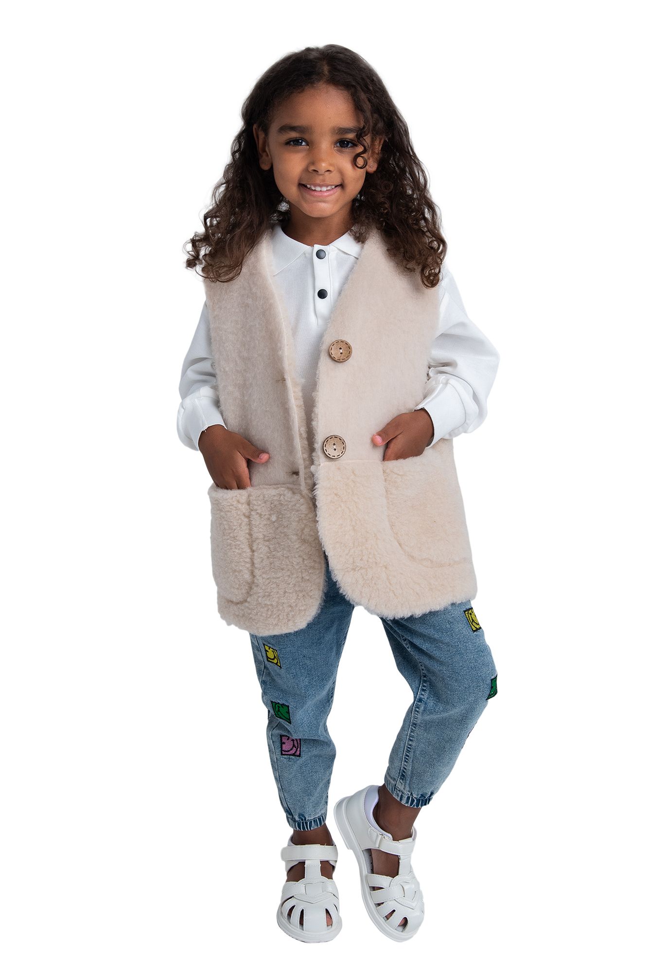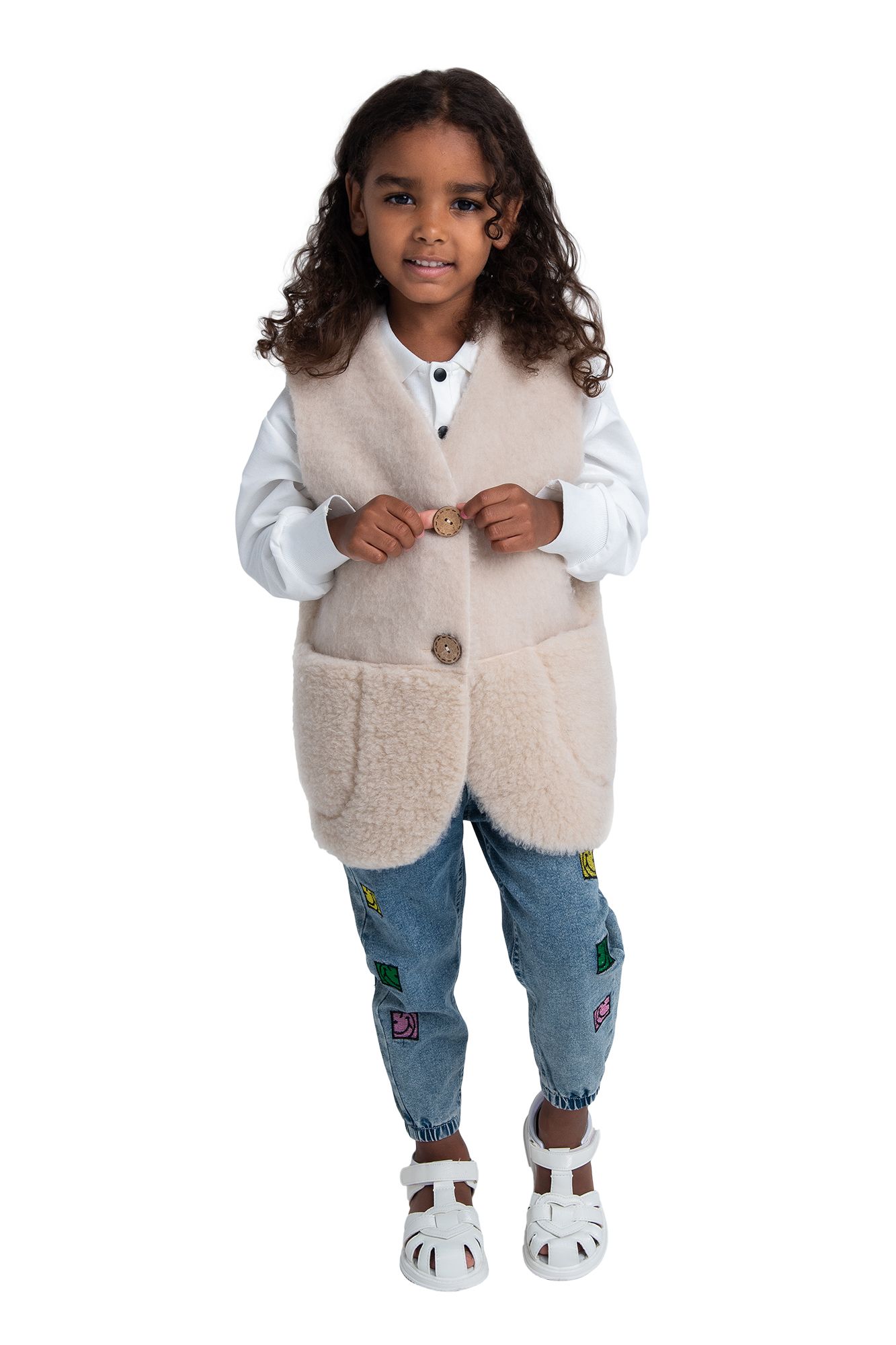 Если дома или в детском саду прохладно, очень выручит меховой жилет из тёплой овечьей шерсти. Дети терпеть не могут, когда на них надевают одежду в несколько слоев, что стесняет движения. Зато легкий жилет совершенно не будет ощущаться и мешать. При этом он надежно защитит малыша от холода и сквозняков., Выбор натуральных тканей для детей самый удачный. Воздействие овечьей шерсти хорошего качества целебно. Оно окутывает сухим комфортным теплом. Тело не перегревается и свободно дышит., Жилет легко снимается, застегиваясь спереди на пуговицы. По бокам есть два кармана, куда малыш спрячет носовой платок и кучу других полезных вещей.