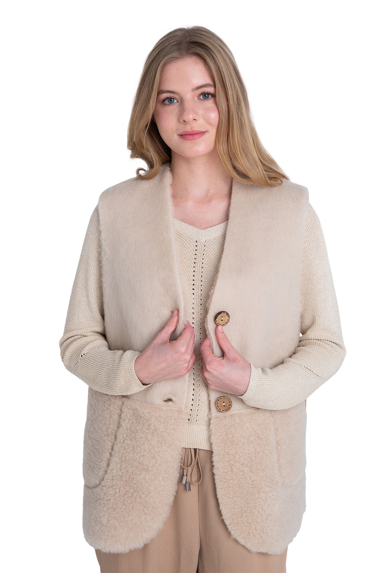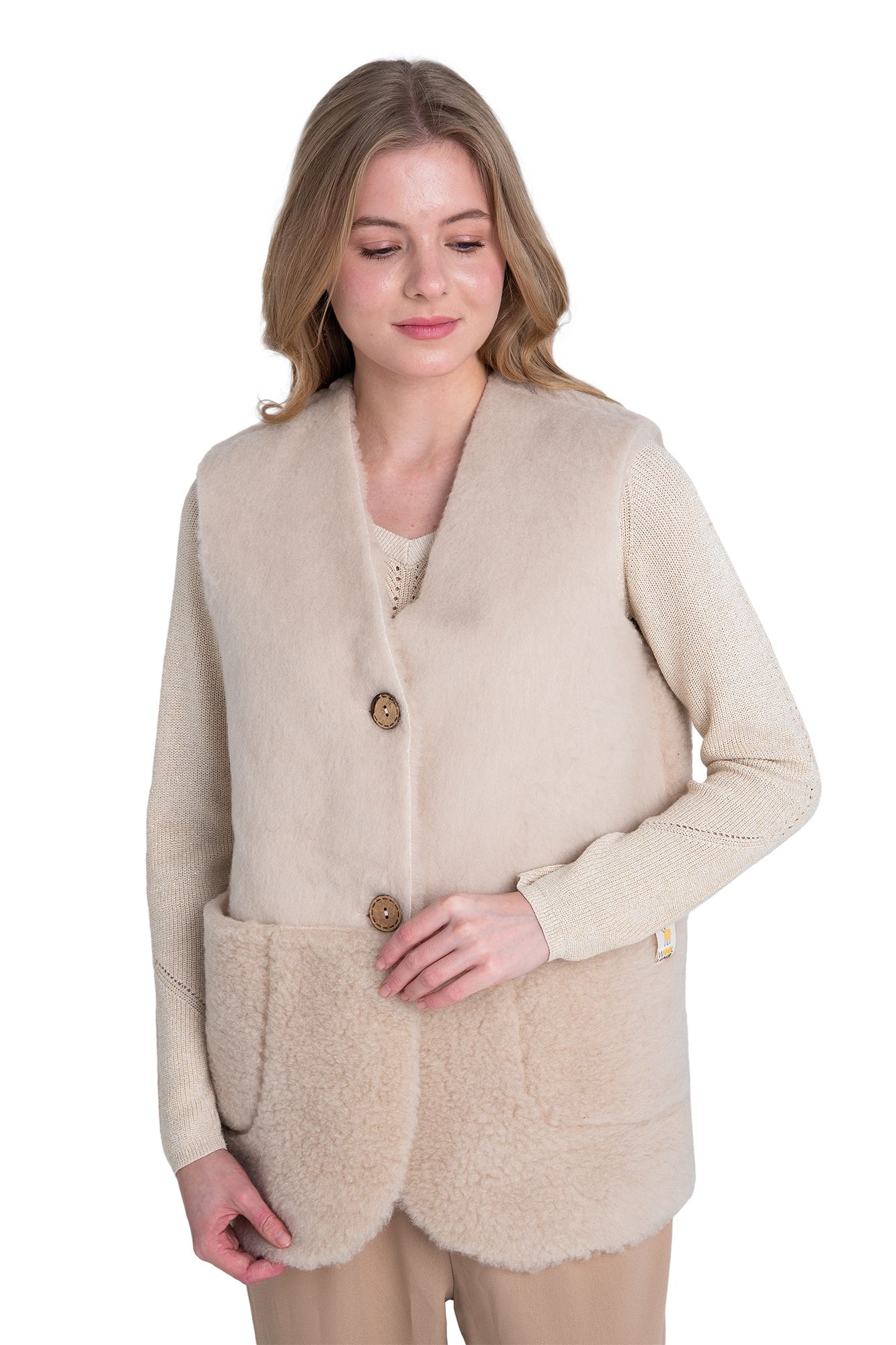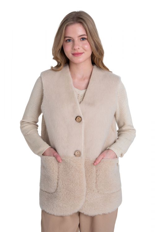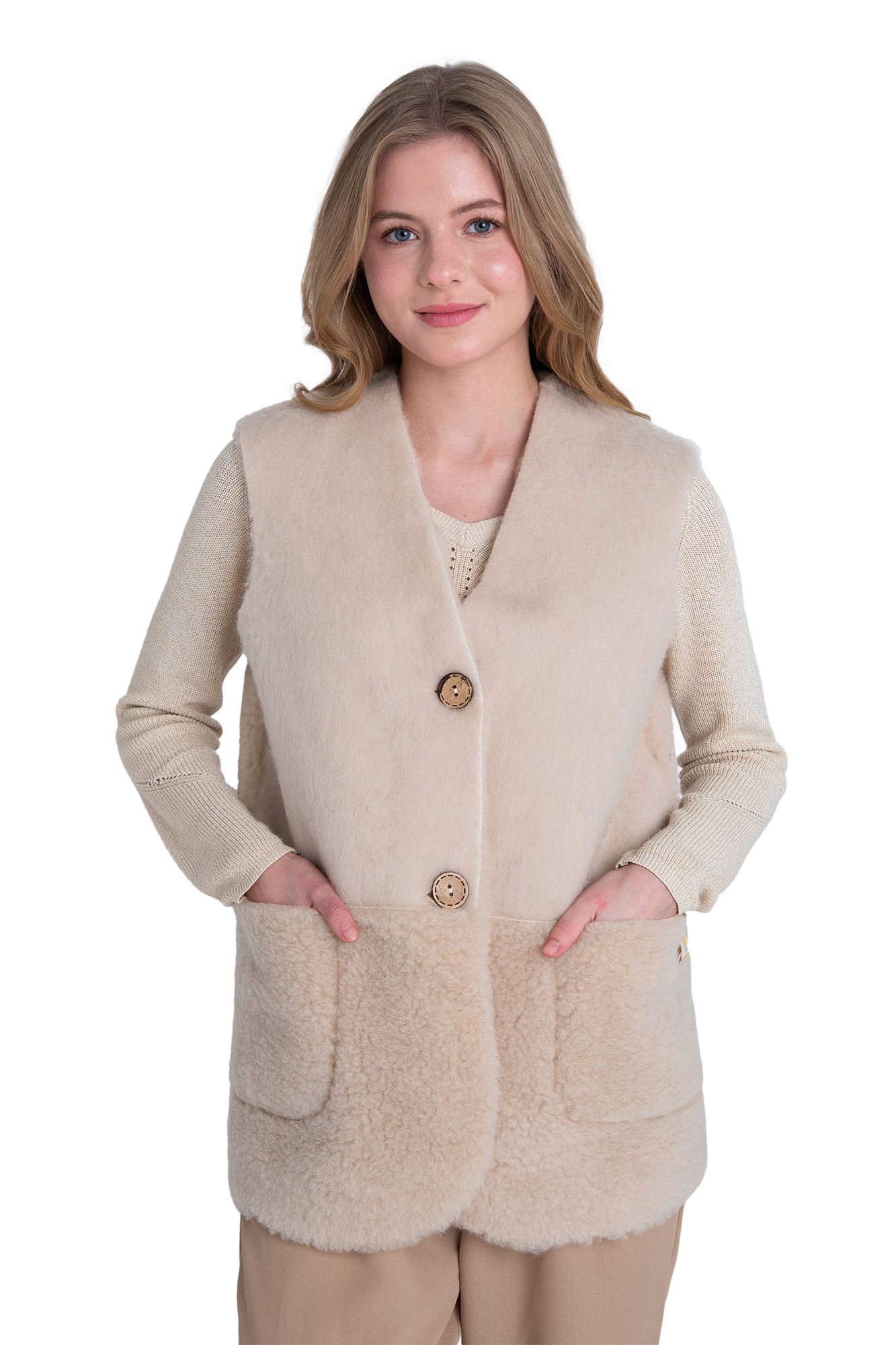 Жилет меховой жилет на пуговицах из натуральной овечьей шерсти. Высота ворса 12 мм, изнутри меховой начес 2-3 мм. Жилет БЕЗ ОТДЕЛКИ КРАЯ, благодаря этому жилет более мягкий и пластичный, не сыпется, с идеальной посадкой на женскую фигуру! Жилет можно использовать как верхний и средний слой одежды, для улицы, дома и офиса!, Глубокий накладной карман, оригинальный дизайн, качественный пошив, хорошие лекала и современные расцветки сделают ваш образ максимально комфортным и стильным., Наши изделия созданы из новейшего, уникального, разработанного специально для нас, материала на основе натуральной шерсти. Невероятно мягкий, легкий, пластичный он подарит тепло и комфорт своей обладательнице. Стильный фасон отвечает всем современным тенденциям моды!, Все наши лекала уникальны и не имеют аналогов, разработаны на собственном швейном производстве фабрики WOOLLAMB, это обеспечивает отличную посадку и комфортное использование для любой фигуры., Благодаря высокому содержанию ланолина, шерсть обладает высокими оздоравливающими и согревающими свойствами, благоприятно влияет на весь организм в целом! Одежда из натуральной шерсти подарит легкость, комфорт и сухое тепло рожденное природой!, Уход за изделиями максимально прост, стирка ручная со средствами для шерсти, или сухая химчистка, при необходимости можно отпарить паровым утюгом.