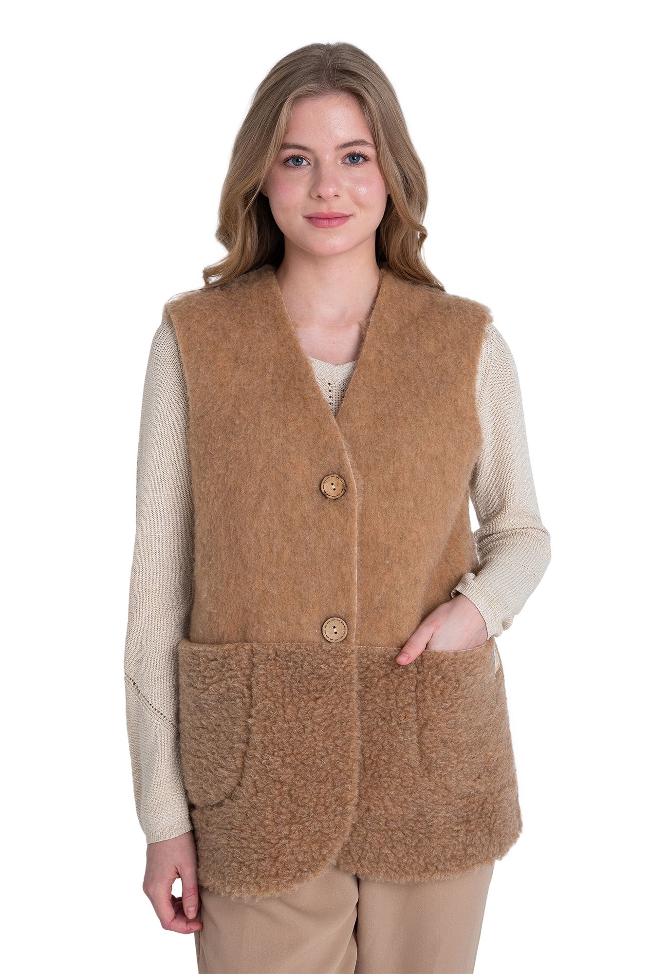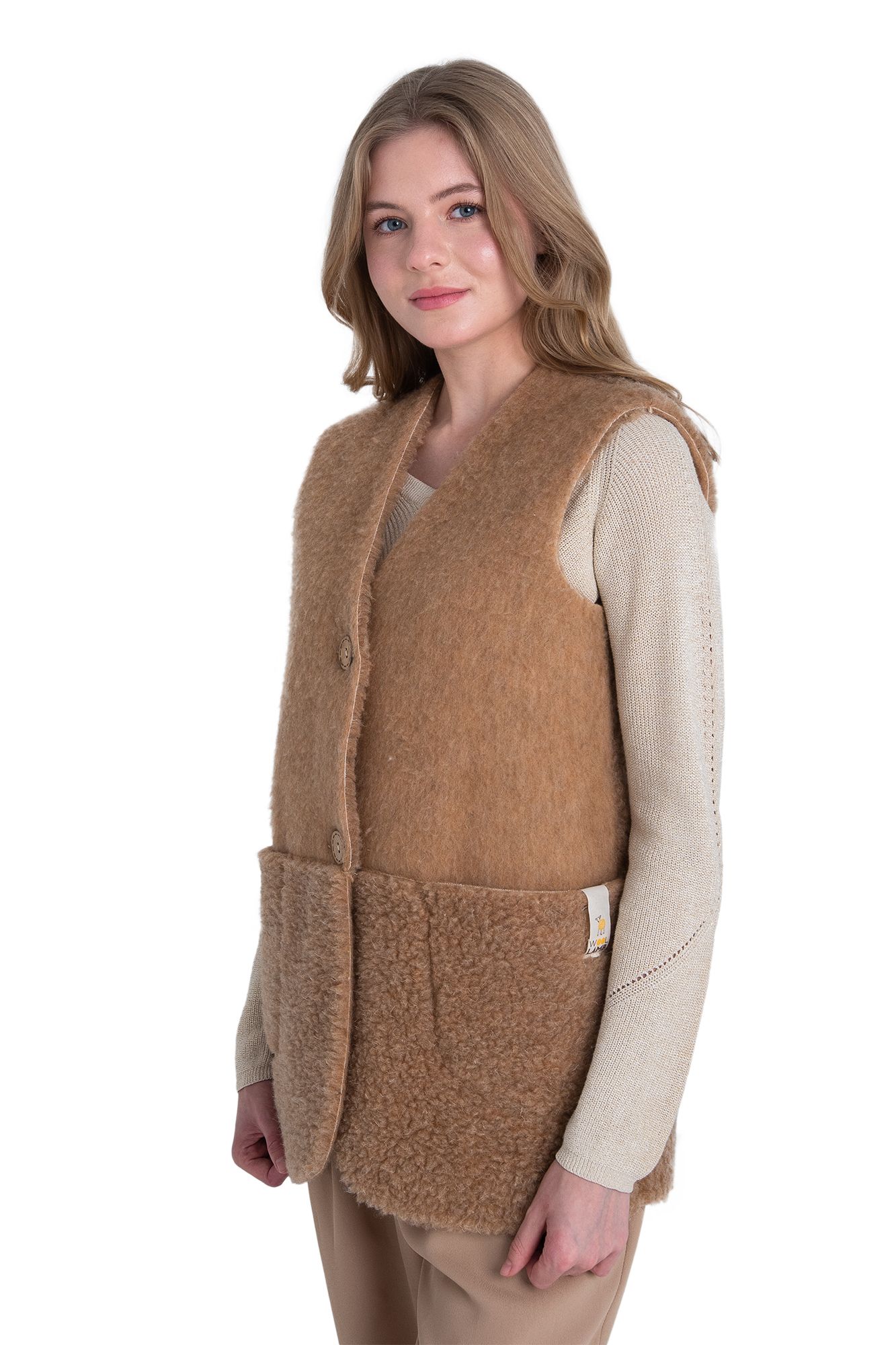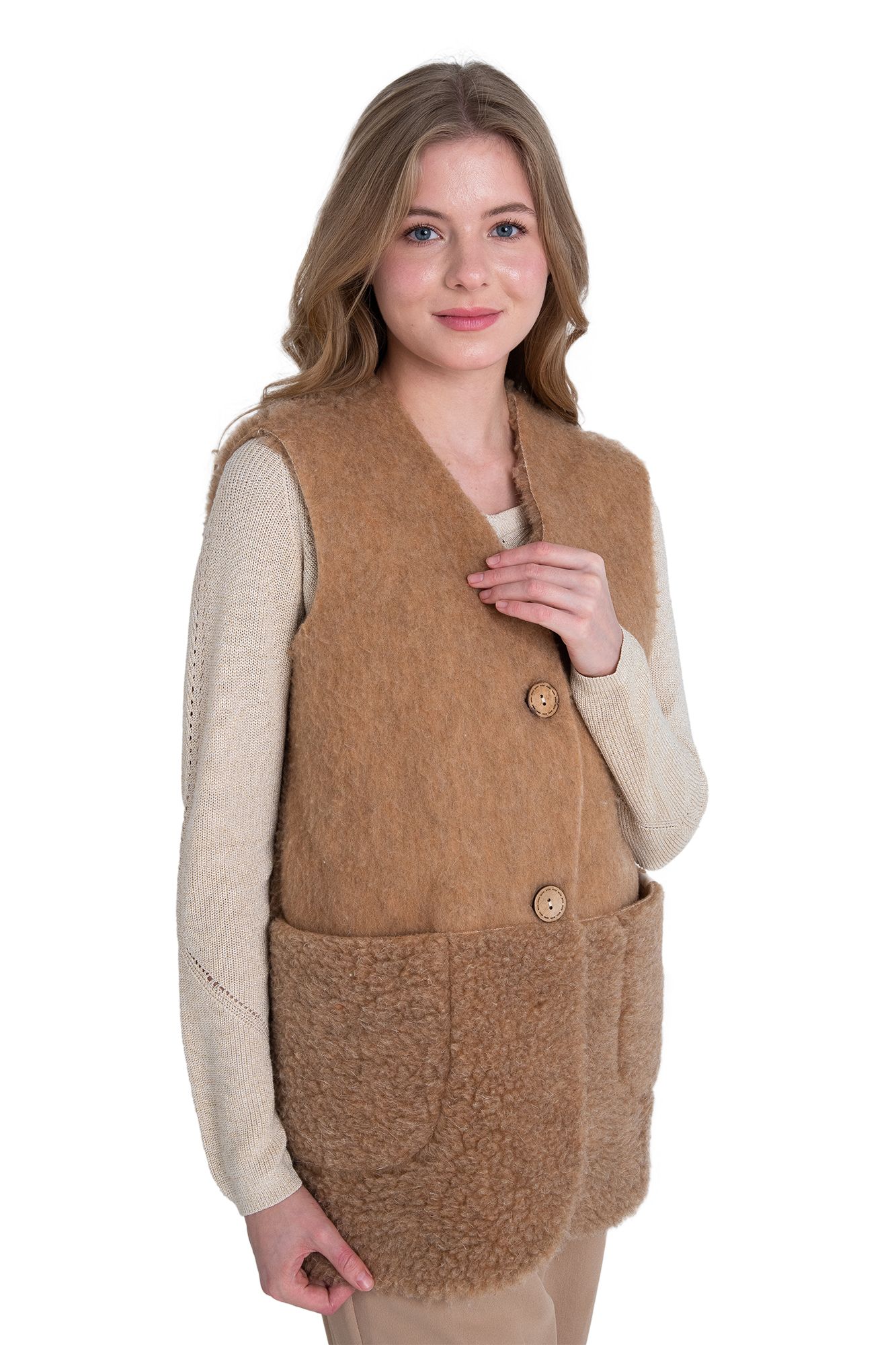 Жилет меховой жилет на пуговицах из натуральной овечьей шерсти. Высота ворса 12 мм, изнутри меховой начес 2-3 мм. Жилет БЕЗ ОТДЕЛКИ КРАЯ, благодаря этому жилет более мягкий и пластичный, не сыпется, с идеальной посадкой на женскую фигуру! Жилет можно использовать как верхний и средний слой одежды, для улицы, дома и офиса!, Глубокий накладной карман, оригинальный дизайн, качественный пошив, хорошие лекала и современные расцветки сделают ваш образ максимально комфортным и стильным., Наши изделия созданы из новейшего, уникального, разработанного специально для нас, материала на основе натуральной шерсти. Невероятно мягкий, легкий, пластичный он подарит тепло и комфорт своей обладательнице. Стильный фасон отвечает всем современным тенденциям моды!, Все наши лекала уникальны и не имеют аналогов, разработаны на собственном швейном производстве фабрики WOOLLAMB, это обеспечивает отличную посадку и комфортное использование для любой фигуры., Благодаря высокому содержанию ланолина, шерсть обладает высокими оздоравливающими и согревающими свойствами, благоприятно влияет на весь организм в целом! Одежда из натуральной шерсти подарит легкость, комфорт и сухое тепло рожденное природой!, Уход за изделиями максимально прост, стирка ручная со средствами для шерсти, или сухая химчистка, при необходимости можно отпарить паровым утюгом.