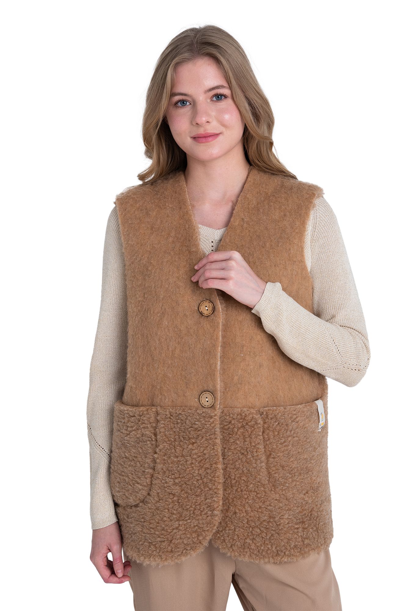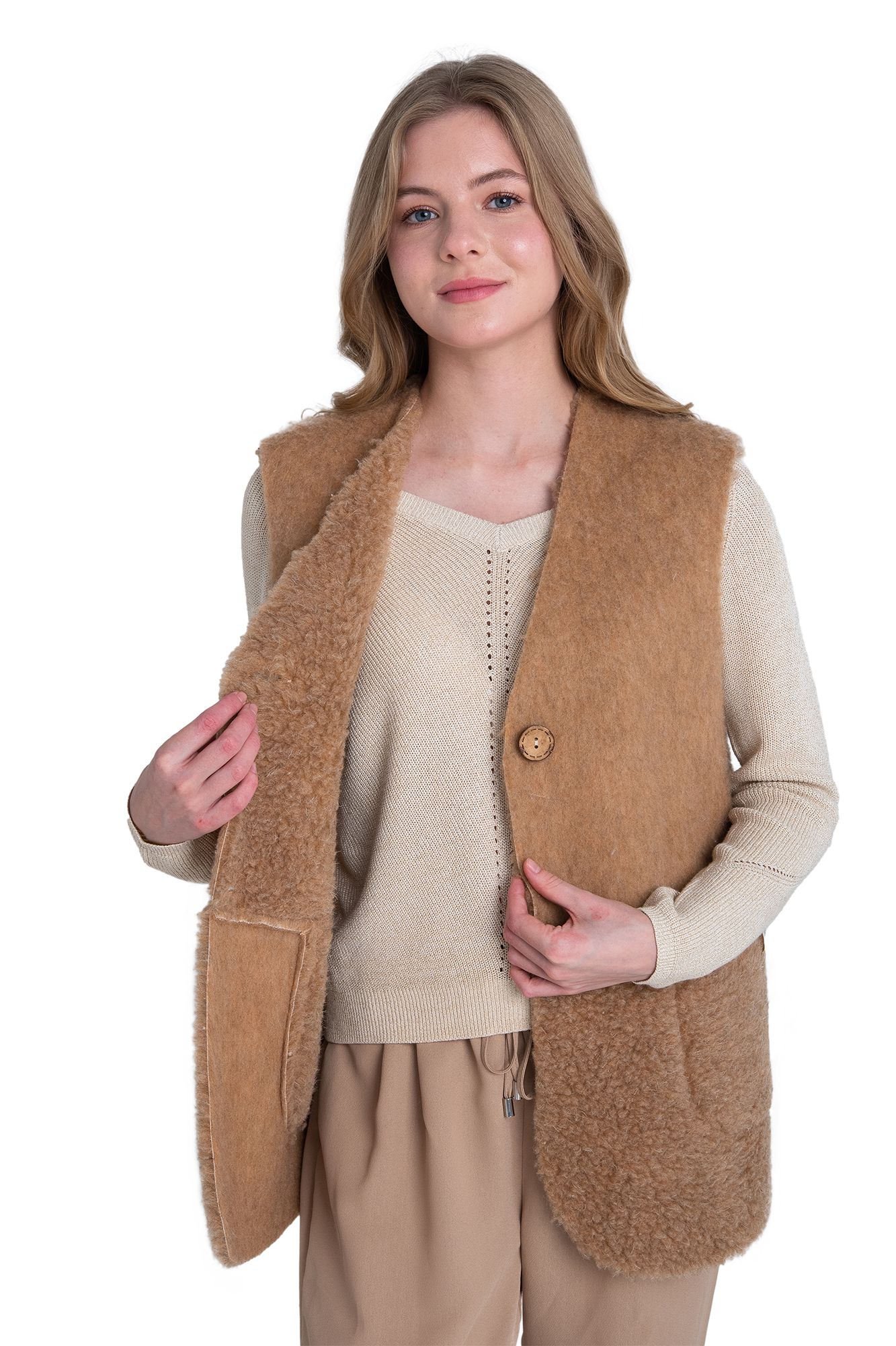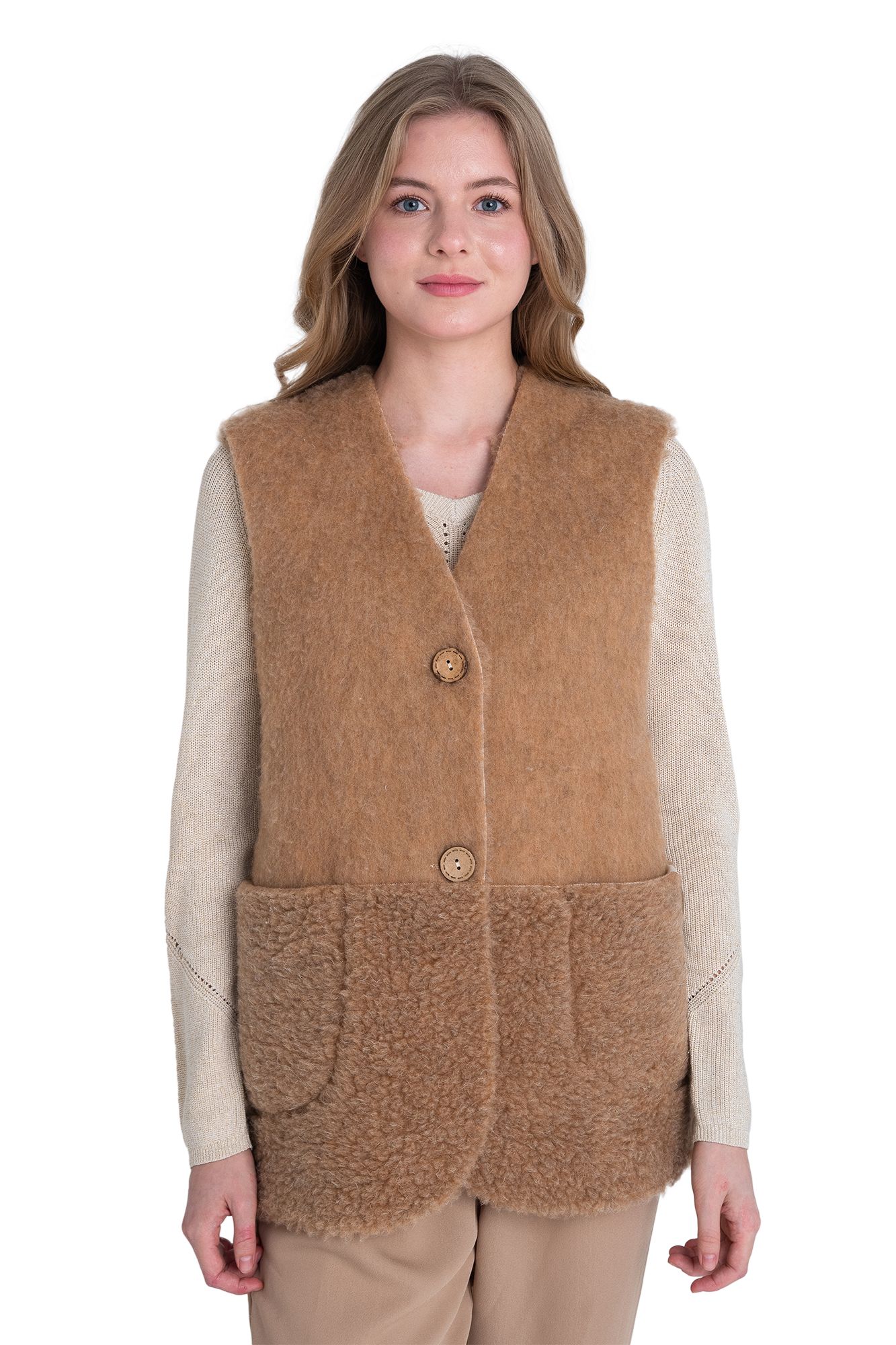 Жилет меховой жилет на пуговицах из натуральной овечьей шерсти. Высота ворса 12 мм, изнутри меховой начес 2-3 мм. Жилет БЕЗ ОТДЕЛКИ КРАЯ, благодаря этому жилет более мягкий и пластичный, не сыпется, с идеальной посадкой на женскую фигуру! Жилет можно использовать как верхний и средний слой одежды, для улицы, дома и офиса!, Глубокий накладной карман, оригинальный дизайн, качественный пошив, хорошие лекала и современные расцветки сделают ваш образ максимально комфортным и стильным., Наши изделия созданы из новейшего, уникального, разработанного специально для нас, материала на основе натуральной шерсти. Невероятно мягкий, легкий, пластичный он подарит тепло и комфорт своей обладательнице. Стильный фасон отвечает всем современным тенденциям моды!, Все наши лекала уникальны и не имеют аналогов, разработаны на собственном швейном производстве фабрики WOOLLAMB, это обеспечивает отличную посадку и комфортное использование для любой фигуры., Благодаря высокому содержанию ланолина, шерсть обладает высокими оздоравливающими и согревающими свойствами, благоприятно влияет на весь организм в целом! Одежда из натуральной шерсти подарит легкость, комфорт и сухое тепло рожденное природой!, Уход за изделиями максимально прост, стирка ручная со средствами для шерсти, или сухая химчистка, при необходимости можно отпарить паровым утюгом.
