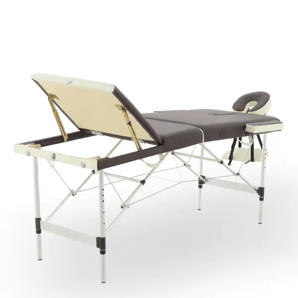 Стол массажный переносной на алюминиевой раме арт. JFAL01A (3-х секционный) (коричневый/кремовый) (PA3.20.13A-00)