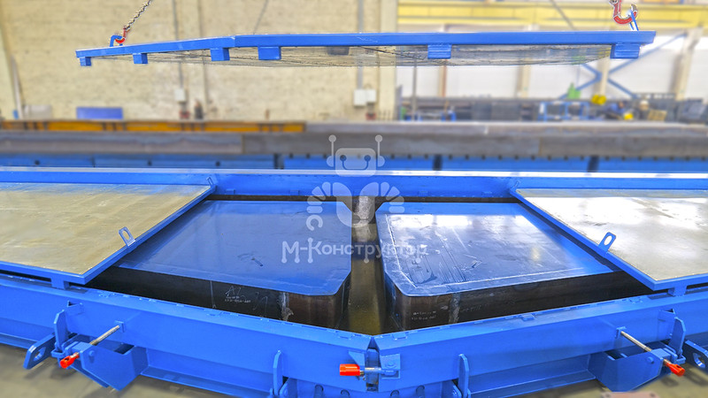 Представленная металлоформа — пример комплексного инженерного подхода, где учтены нагрузки, технологические процессы и требования безопасности. Реализация предварительного выгиба, продуманная система преднатяжения и точные формующие элементы подтверждают компетенции завода «М-Конструктор» в разработке и изготовлении оборудования для сложных и ответственных ЖБИ-изделий.