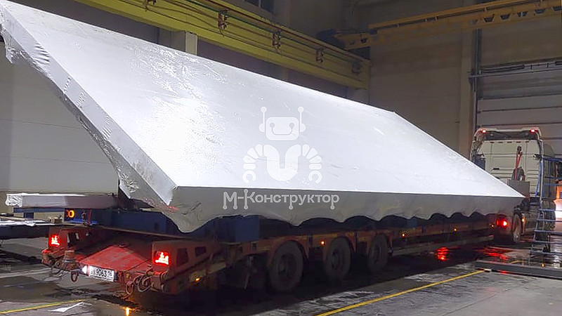 Завод «М-Конструктор» доставляет металлоформы и технологическое оборудование любыми видами транспорта — от автотралов до железной дороги. В осенне-зимний период, когда возрастает риск осадков и перепадов температур, мы дополнительно защищаем продукцию, перевозимую в открытых прицепах, с помощью термоусадочной плёнки.
