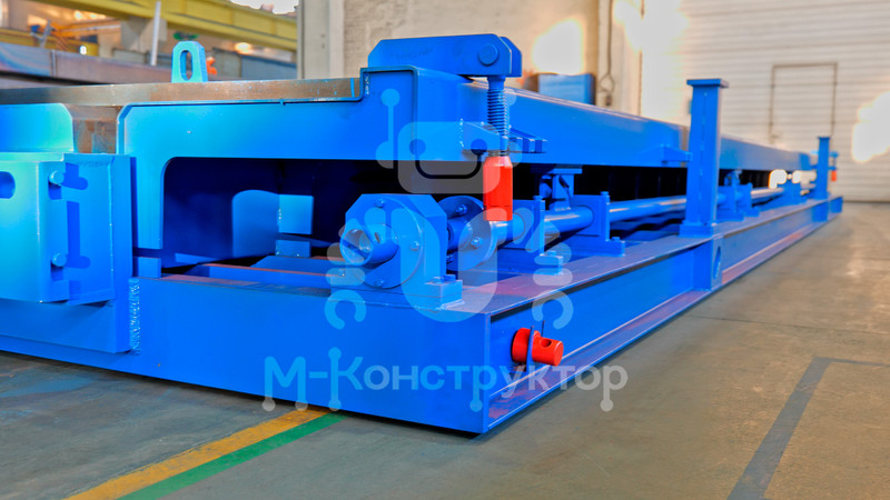 В металлоформах, изготовленных заводом “М-Конструктор”, предусмотрен выпуск плит ТТ с возможностью переналадки по длине. Форма одноместная, оснащена силовой рамой для работы с преднапряжённой арматурой, силовыми упорами и защитными кожухами на торцах.