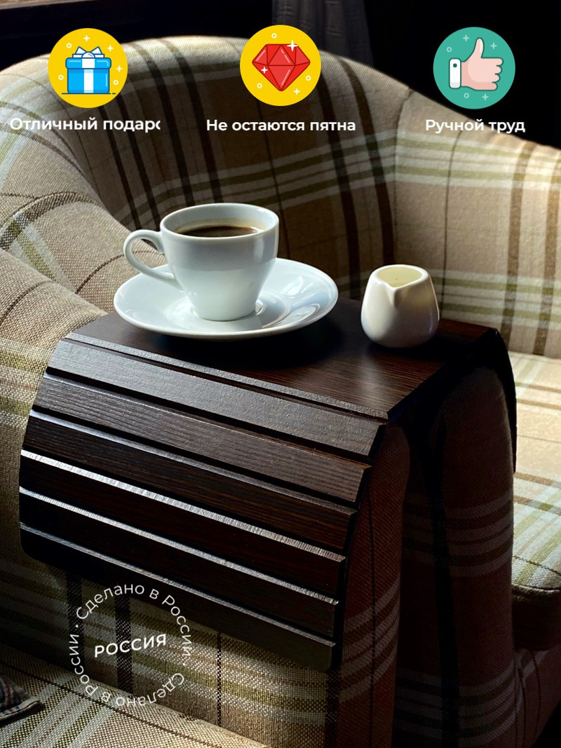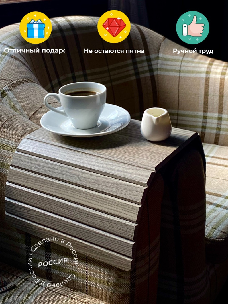 Мы — производитель деревянных гибких столиков на подлокотник дивана. Изделие сочетает современный внешний вид, высокую функциональность и надёжность, благодаря чему стабильно востребовано как в онлайн-, так и в офлайн-торговле.