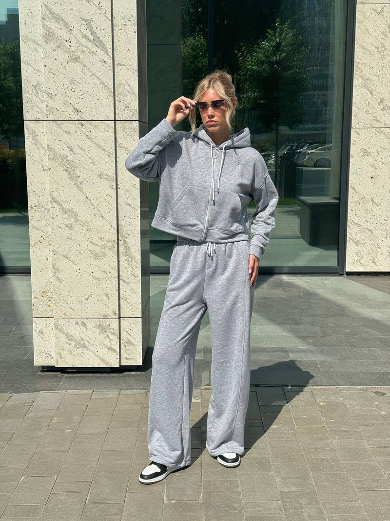 Женский спортивный костюм двойка 2025 — стильный и комфортный комплект для девушек и подростков. Подходит для повседневной носки, прогулок, тренировок, занятий спортом, фитнеса, танцев или отдыха дома. Костюм выполнен из мягкого трикотажного полотна футер трехнитка без начёса. Лёгкий, дышащий и приятный к телу материал дарит комфорт в любую погоду — весной, летом и ранней осенью. Комплектация: худи на молнии с капюшоном и удобными карманами и брюки на резинке. Оверсайз крой и продуманный дизайн создают модный и расслабленный образ. Брюки широкие прямые — идеальный выбор для любой фигуры.