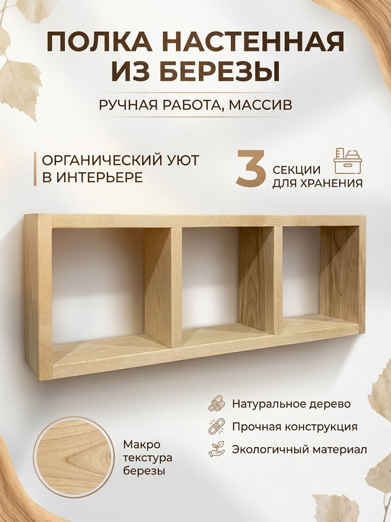 Настенная полка из массива березы.