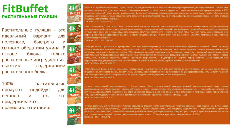 В ассортимент готовых замороженных продуктов от ФитПарад входят: