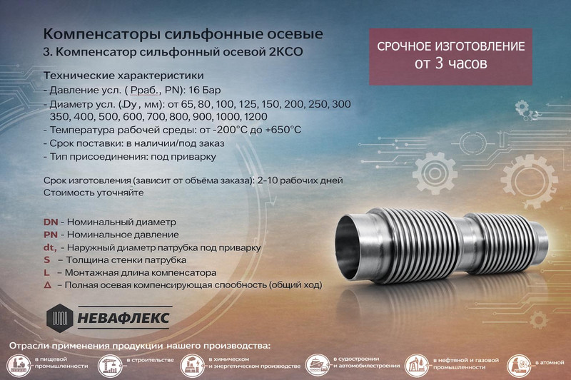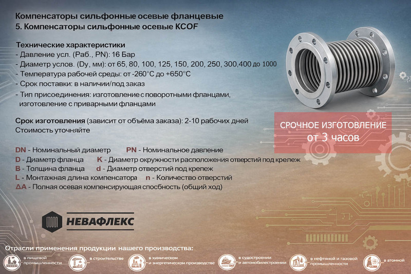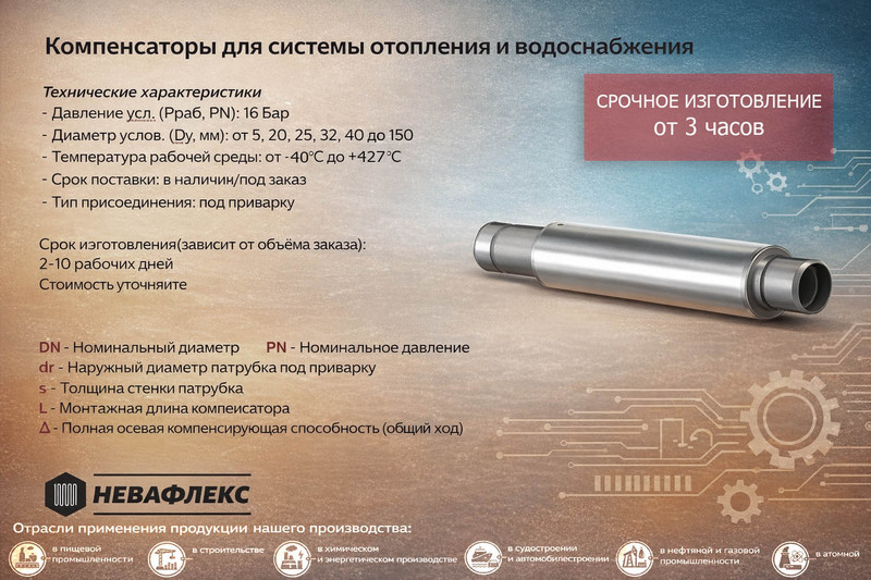 ООО “НЕВАФЛЕКС” — российская компания, специализирующаяся на производстве и продаже промышленного оборудования, деталей и комплектующих для трубопроводных систем и производственных установок и систем ...