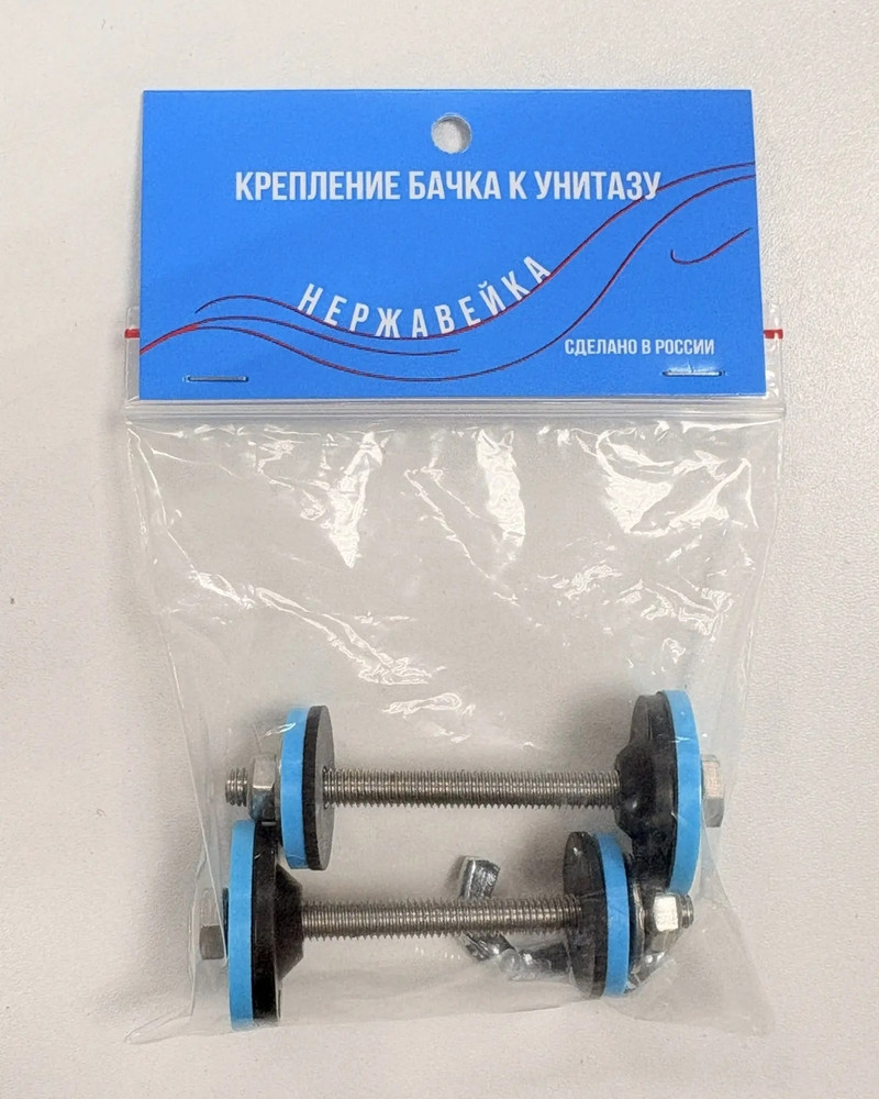 Предлагаем комплект “крепление бачка к унитазу”. Преимущество — болт из нержавеющей стали (A2/AISI) Подходит для ванных комнат с высокой влажностью. В комплект входит: болт М6х70мм А2 — 2шт шайба п...