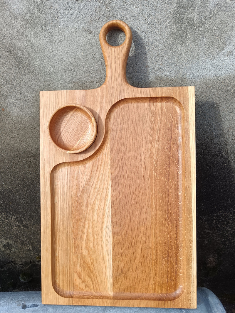 Мы занимаемся производством изделий из кавказского дуба, таких как менажницы, торцевые разделочные доски, доски для подачи и проч. У нас полный цикл производства — от склейки щитов, до упаковки, марки...