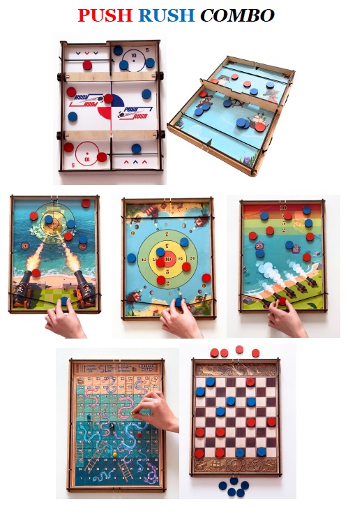 PUSH RUSH Combo — это сборник настольных игр 7 в 1, так как включает в себя 7-мь полноценных игр с разными игро...
