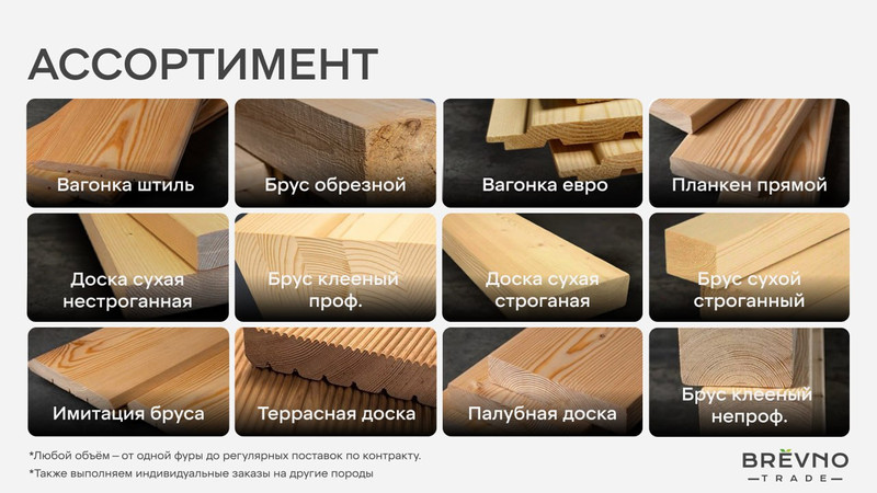 ООО “СЛ Вуд”. Занимаемся полным циклом производства и реализацией от лесозаготовки до готовой продукции. Только отборный Сибирский лес.