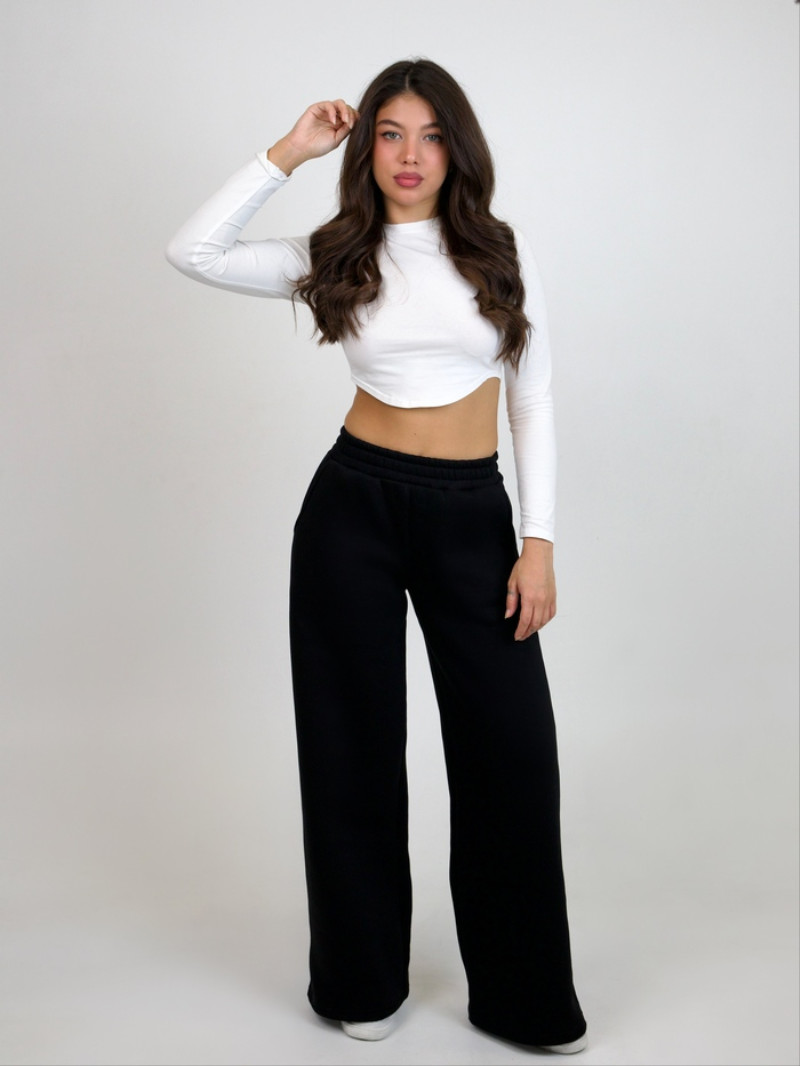 Продам оптом брюки теплые палаццо. 600 шт. Цвет черный. Полотно футер с начесом. Производство Россия. Упакованы в зип пакеты. Промаркированы (честный знак), декларация о соответствии есть.
