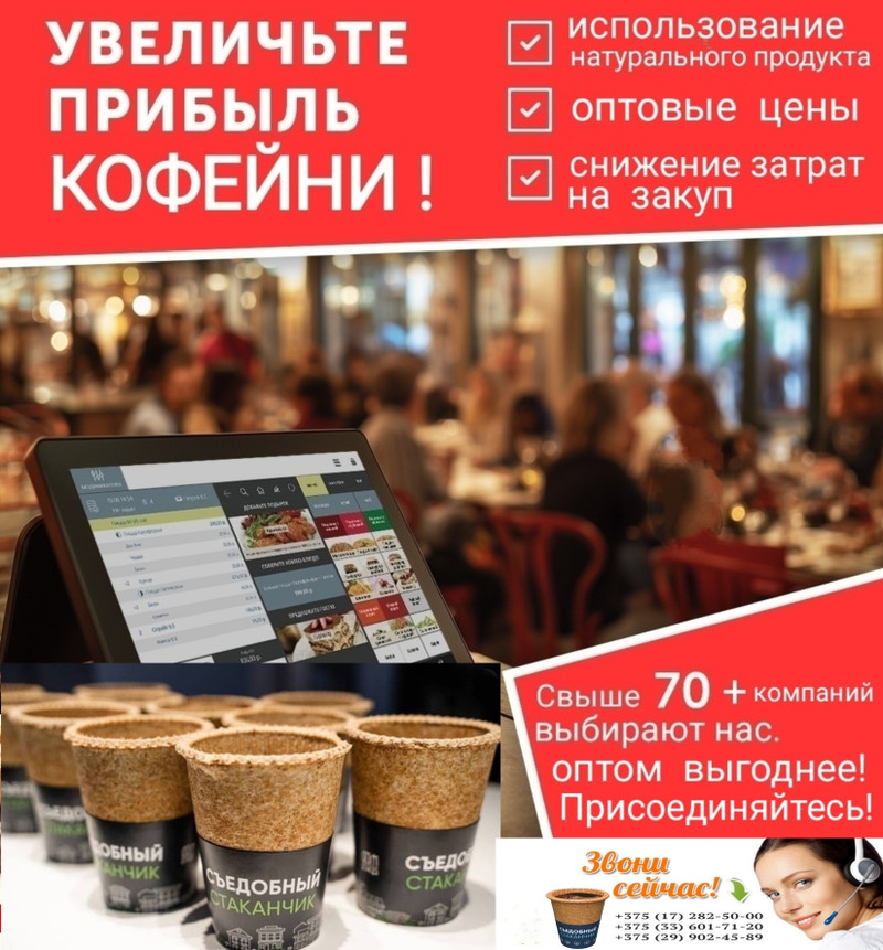 ЧУП”Остров Детства”Сказочный Мир”поставляет — Стаканчики съедобные для кофе и других горячих напитков и продуктов по хорошим оптовым ценам от производителя.