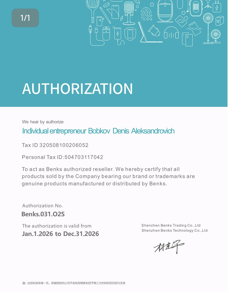 Наш магазин является старейшим дистрибьютором бренда Benks в России.