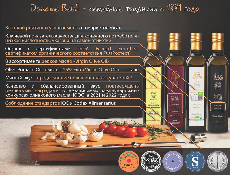 ООО Инвент-сервис является эксклюзивным представителем и дистрибьютором бренда Domaine Beldi- Тунисского производителя оливкового масла премиального качества. Бренд имеет международные награды (Лондон...