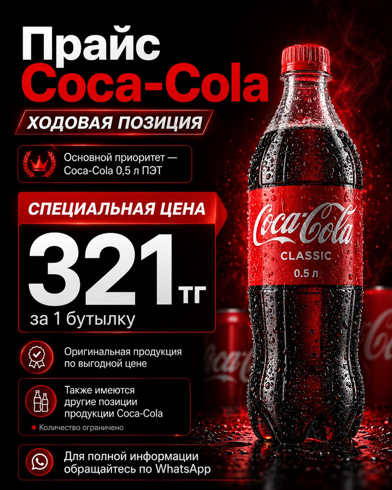 Компания занимается оптовыми поставками прохладительных напитков для магазинов, торговых точек, общепита, столовых, кафе, фастфуда, банкетных залов, рынков и других организаций.