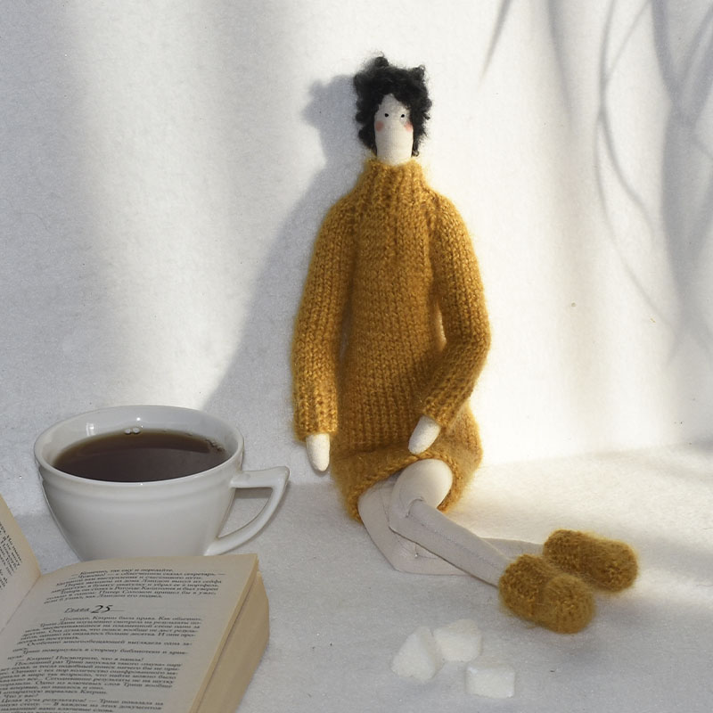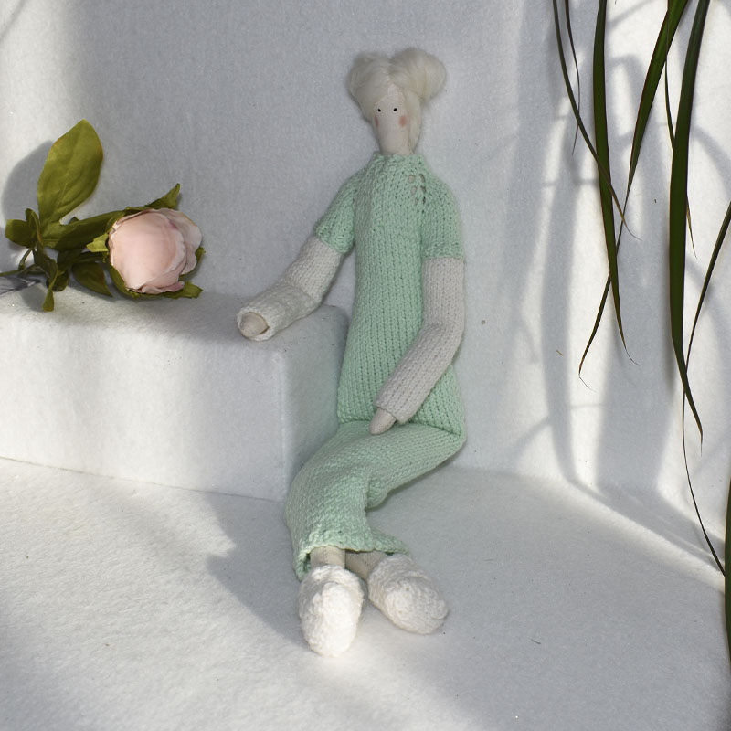 Материалы: качественный хлопок, гипоаллергенный наполнитель, вязаные аксессуары.