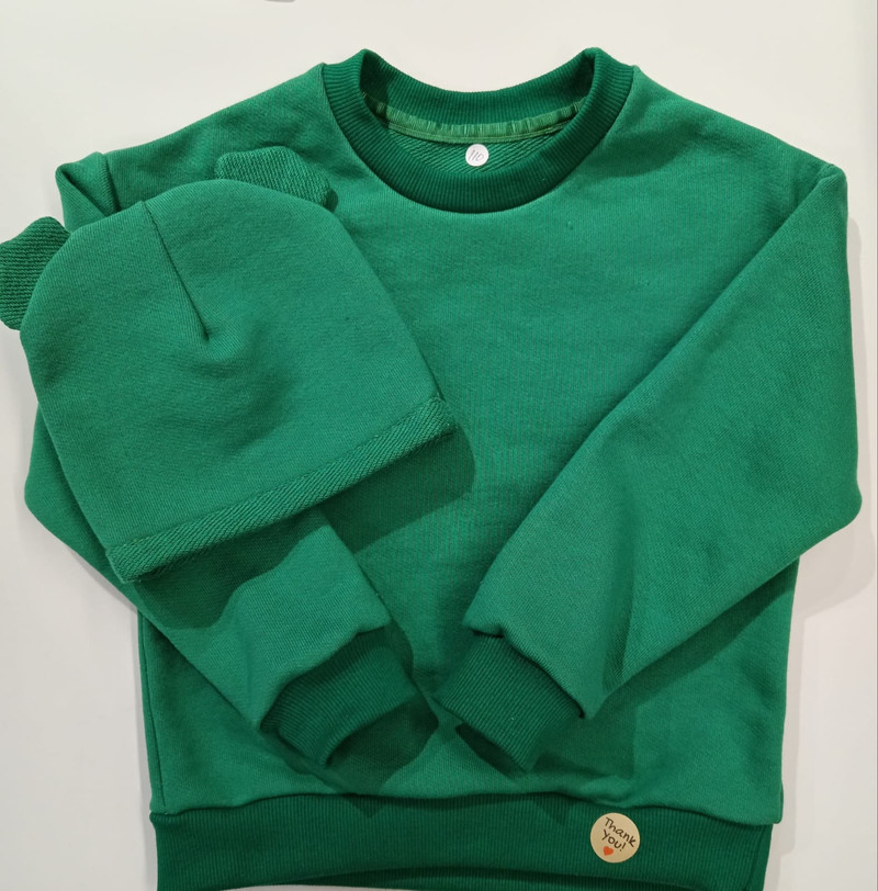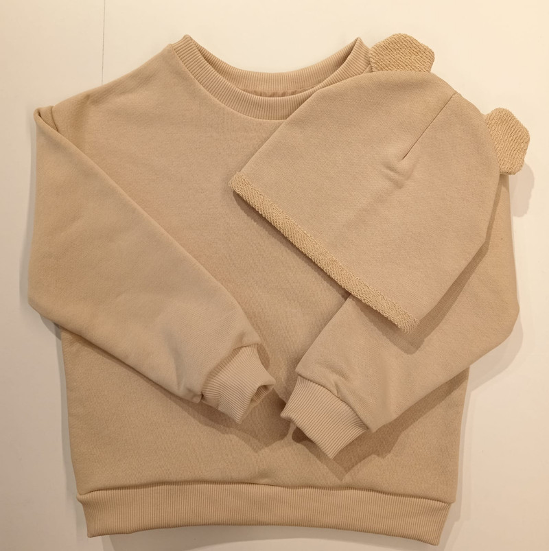 Изделия отшиты из супер качественного футера петля 340гр, качество отшива премиум Свитшоты детские можно продавать в комплекте с шапочкой или по отдельности Товар был заказан по постоплате для маркет...