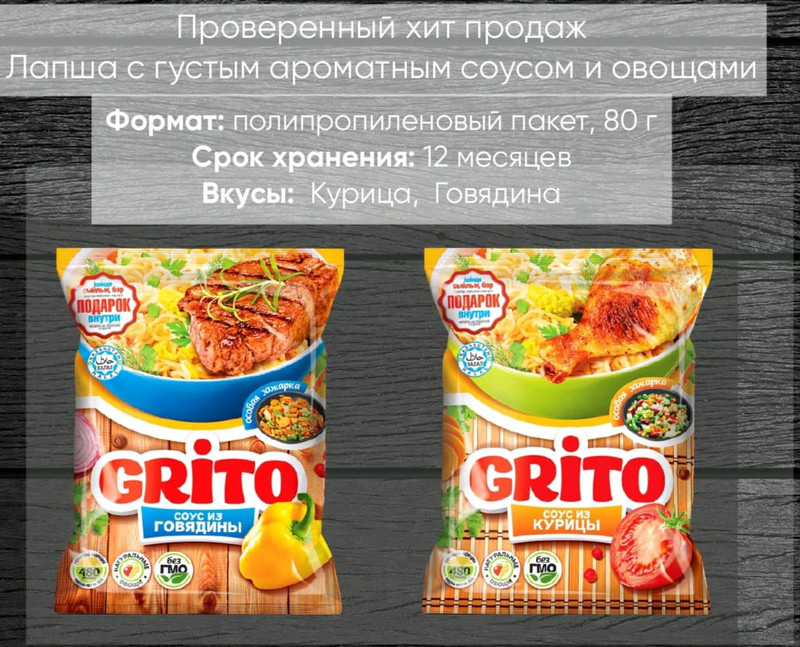 Продукция изготавливается из первосортной муки Костанайской области без добавления сахара и искусственных вкусовых добавок. Используется только натуральное сырьё, отборные специи и ингредиенты без ГМО...