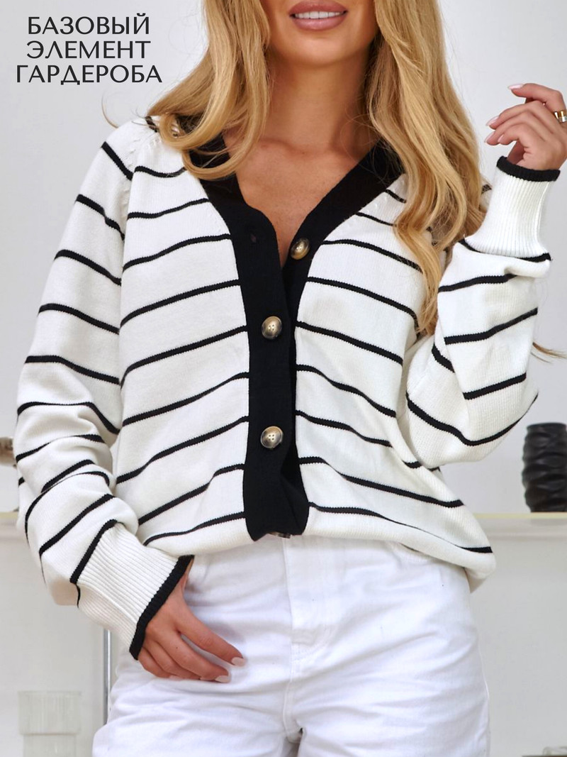 *Универсальность:Классический черно-белый принт “полоска” легко комбинируется с любой базой вашего га...